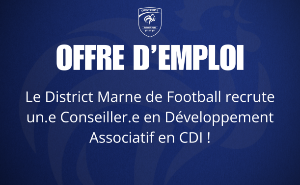 Le District Marne de Football recrute un(e) Conseiller(e) en Développement Associatif en CDI (poste basé au siège du District).